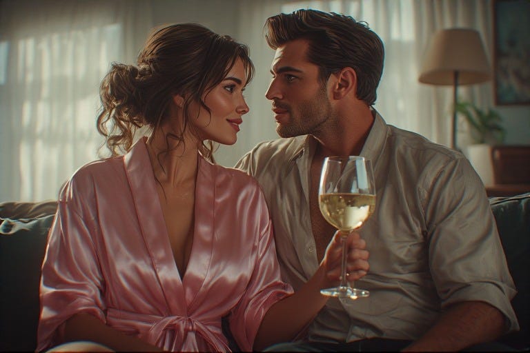 It was late Thursday evening, and Eva was home from her job as an office administrator, exhausted and ready to relax. She was eagerly waiting for her boyfriend to return home. She changed into her pink silk robe, picked up a glass of chilled white wine, and went to the living room to watch a movie.